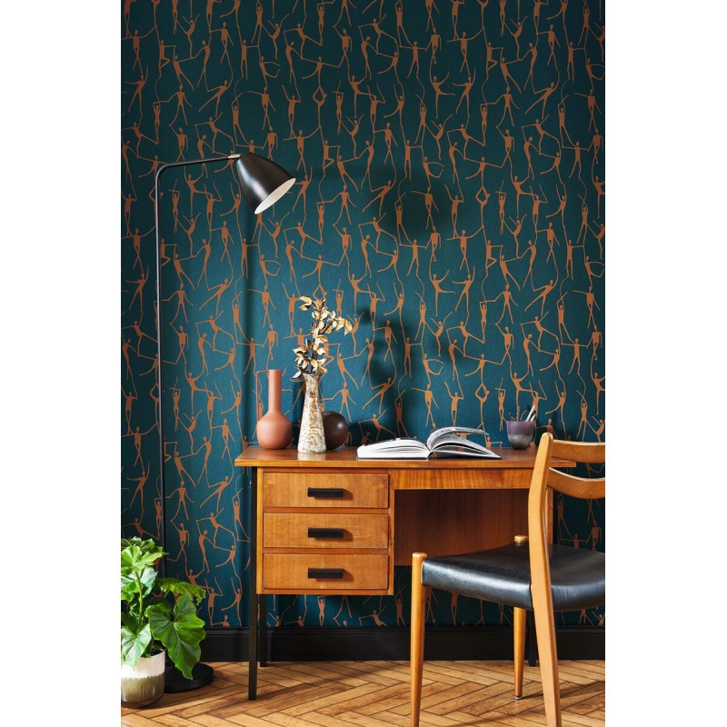 Papier peint Casadeco Iconic alberto cuivre coni88426727 Hommage au sculpteur Alberto Giacometti et aux danseurs de l'Opéra, le papier-peint Alberto est un mix de grâce et de force. On y retrouve la vitalité incandescente des modèles de l'artiste et la légèreté des entrechats chorégraphiques... Un mariage à la fois simple et artistique assumé ! Follement inspirée, la collection Iconic convoque (et sublime !) la mode vintage en un éblouissant panorama des années 50 à 80. Comme ces deux jeunes filles, faufilez-vous dans un défilé de mode et admirez la Fashion Week en mode années 50 : alors, plutôt Christian Dior ou Pierre Balmain ? Leurs silhouettes seules se retrouvent dans le dessin filaire et raffiné de Model. Avec Arty,le trait s'épure encore, et la géométrie rime avec poésie. Et que dire du virevoltant Alberto et ses danseurs filiformes, comme sculptés à la hâte avant leur envol ? Après cette ascension, on revient sur terre avec les précieuses corolles de Flower Power si emblématiques des années 70. Quant au surréaliste Not a circle, il ne tourne plus très rond ...Pour notre plus grand bonheur. La parenthèse enchantée se clôt avec deux panoramiques déjantés : Pop et ses dessins psychédéliques et Abstract et son collage artistique très eighties.