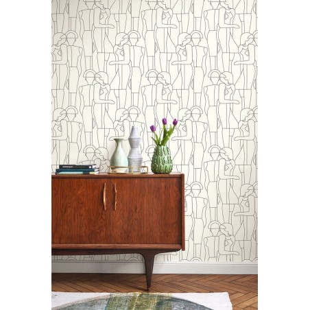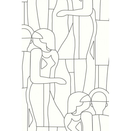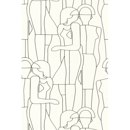 Papier peint Casadeco Iconic model noir gravure coni88430520 Retrouvons nos jeunes demoiselles en délicates ombres chinoises chez Model. Ici le dessin filaire, très tendance, est en totale adéquation avec le motif mode. L'impression rotative s'épanouit en un jeu de technique nuancé : se déploie ainsi un motif subtilement laqué, au relief brillant. Follement inspirée, la collection Iconic convoque (et sublime !) la mode vintage en un éblouissant panorama des années 50 à 80. Comme ces deux jeunes filles, faufilez-vous dans un défilé de mode et admirez la Fashion Week en mode années 50 : alors, plutôt Christian Dior ou Pierre Balmain ? Leurs silhouettes seules se retrouvent dans le dessin filaire et raffiné de Model. Avec Arty,le trait s'épure encore, et la géométrie rime avec poésie. Et que dire du virevoltant Alberto et ses danseurs filiformes, comme sculptés à la hâte avant leur envol ? Après cette ascension, on revient sur terre avec les précieuses corolles de Flower Power si emblématiques des années 70. Quant au surréaliste Not a circle, il ne tourne plus très rond ...Pour notre plus grand bonheur. La parenthèse enchantée se clôt avec deux panoramiques déjantés : Pop et ses dessins psychédéliques et Abstract et son collage artistique très eighties.