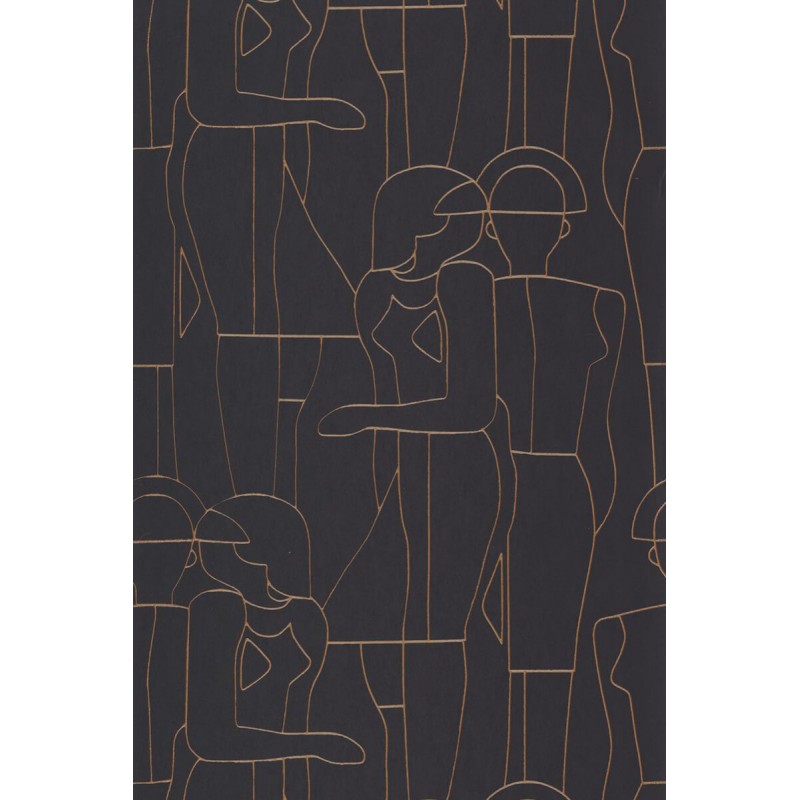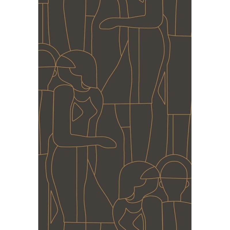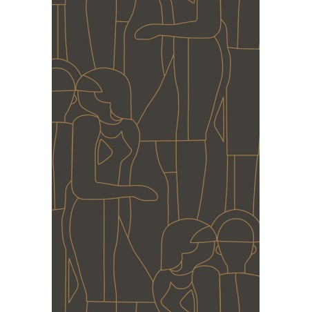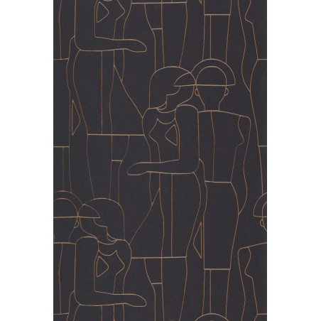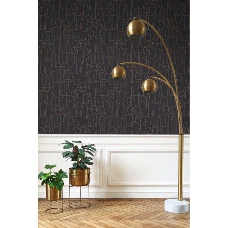 Papier peint Casadeco Iconic model noir dore coni88439909 Retrouvons nos jeunes demoiselles en délicates ombres chinoises chez Model. Ici le dessin filaire, très tendance, est en totale adéquation avec le motif mode. L'impression rotative s'épanouit en un jeu de technique nuancé : se déploie ainsi un motif subtilement laqué, au relief brillant. Follement inspirée, la collection Iconic convoque (et sublime !) la mode vintage en un éblouissant panorama des années 50 à 80. Comme ces deux jeunes filles, faufilez-vous dans un défilé de mode et admirez la Fashion Week en mode années 50 : alors, plutôt Christian Dior ou Pierre Balmain ? Leurs silhouettes seules se retrouvent dans le dessin filaire et raffiné de Model. Avec Arty, letrait s'épure encore, et la géométrie rime avec poésie. Et que dire du virevoltant Alberto et ses danseurs filiformes, comme sculptés à la hâte avant leur envol ? Après cette ascension, on revient sur terre avec les précieuses corolles de Flower Power si emblématiques des années 70. Quant au surréaliste Not a circle, il ne tourne plus très rond ...Pour notre plus grand bonheur. La parenthèse enchantée se clôt avec deux panoramiques déjantés : Pop et ses dessins psychédéliques et Abstract et son collage artistique très eighties.