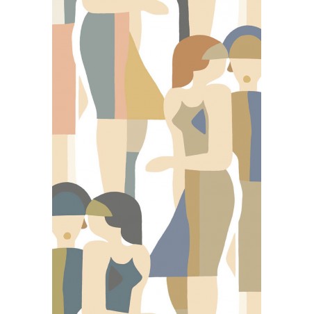Papier peint Casadeco Iconic fashion week multico fond blanc coni88444426 Se sont-elles glissées dans un cocktail de fin de défilé ? Quels secrets s'échangent-elles ? Devant ces deux élégantes, le mystère reste entier... La sophistication 50-60's y est poussée à son maximum : grâce au tour de force de l'impression numérique, délectez-vous de l'extraordinaire garde-robe de ces jeunes filles sur plus de 5 mètres. Follement inspirée, la collection Iconic convoque (et sublime !) la mode vintage en un éblouissant panorama des années 50 à 80. Comme ces deux jeunes filles, faufilez-vous dans un défilé de mode et admirez la Fashion Week en mode années 50 : alors, plutôt Christian Dior ou Pierre Balmain ? Leurs silhouettes seules se retrouvent dans le dessin filaire et raffiné de Model. Avec Arty, le trait s'épure encore, et la géométrie rime avec poésie. Et que dire du virevoltant Alberto et ses danseurs filiformes, comme sculptés à la hâte avant leur envol ? Après cette ascension, on revient sur terre avec les précieuses corolles de Flower Power si emblématiques des années 70. Quant au surréaliste Not a circle, il ne tourne plus très rond ...Pour notre plus grand bonheur. La parenthèse enchantée se clôt avec deux panoramiques déjantés : Pop et ses dessins psychédéliques et Abstract et son collage artistique très eighties.