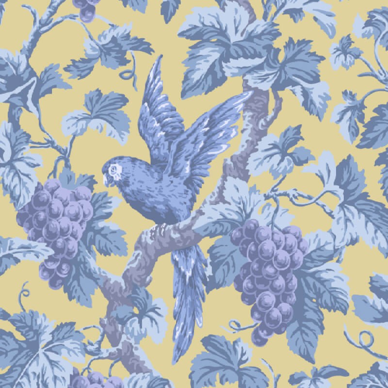 | Couleur Papier Peint | Hyacinth, Lilac & China Blue on Ochre |