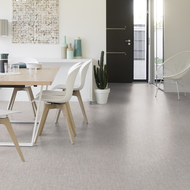Le revêtement de sol sélectionné est un PVC compact multicouche, avec une double armature, groupe T d'abrasion, en rouleau de 2 m de large, de type TARALAY IMPRESSION HOP COMPACT 33.