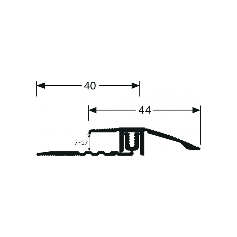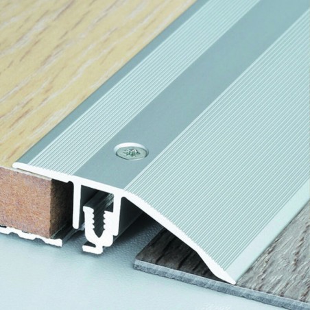 Profilé en 2 parties, avec une surface striés antidérapantes, avec possibilité de les ajuster suivant la hauteur du parquet.