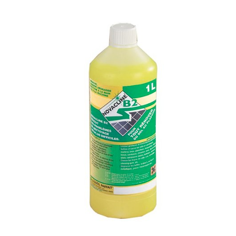 Novacline B2 rénove, lessive, dégraisse, à la main ou en machine. Il s'agit d'un nettoyant puissant, universel, réservé à un usage professionnel ou industriel. C'est un liquide homogène jaune sans solvant organique.