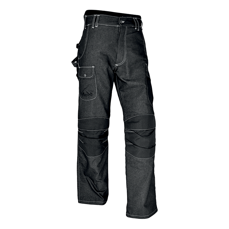 Tissu réalisé avec 60% de coton, 35% de polyester, 5% de fibres extensibles XLA. Dos de ceinture rehaussé pour plus de confort. Poches arrondies. Devantillères réalisées en Cordura® . 1 paire de genouillères norme CE EN 14404 +A1 fournie avec chaque pantalon.