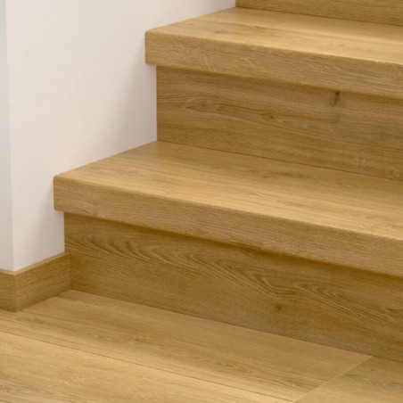 Couvre-marches pour sol vinyle à bord arrondi : une transformation élégante de vos escaliers Vous voulez donner à votre escalier un nouveau look qui correspond à votre beau revêtement de sol en vinyle ? Vous allez adorer nos couvre-marches, le moyen le plus facile et le plus durable de rénover vos escaliers. Votre sol et vos escaliers en harmonie Les couvre-marches sont la meilleure solution et aussi la plus élégante pour rénover votre escalier. Avec une marche et un bord arrondi d'un seul tenant, vous pouvez créer une transition élégante et fluide d'un niveau à l'autre. Ils sont résistants à l'usure, aux rayures, à l'eau, faciles à nettoyer et à poser, parfaits pour tout intérieur. Actuellement uniquement disponible pour Blos, Bloom et Ciro 100 % assortis : Les couvre-marches sont fabriqués à partir de nos propres revêtements de sol Quick-Step, ce qui crée un ensemble harmonieux et homogène pour vos escaliers. Résistants à l'usure et aux rayures : Leur noyau ultra-robuste et leur couche supérieure unique protègent contre les taches, les rayures et les impacts. Pose facile : Les couvre-marches sont faciles à poser sur votre escalier existant avec la colle Quick-Step One4All. Applicable pour : - Escaliers ayant une bordure carrée existante d'une hauteur maximale de 42 mm. - Escaliers avec marches carrées à 90°. Référence : QSVSTRBMP épaisseur : 54 mm Longueur : 1474 mm Largeur : 136 mm Détails du produit : 2 pièces par pack Couvre marche vinyle QSVSTRBMP40238 chêne fumé ramageux Quick-Step La restitution des couleurs varie selon le type d'écran. Les caractéristiques des produits sont données à titre indicatif.