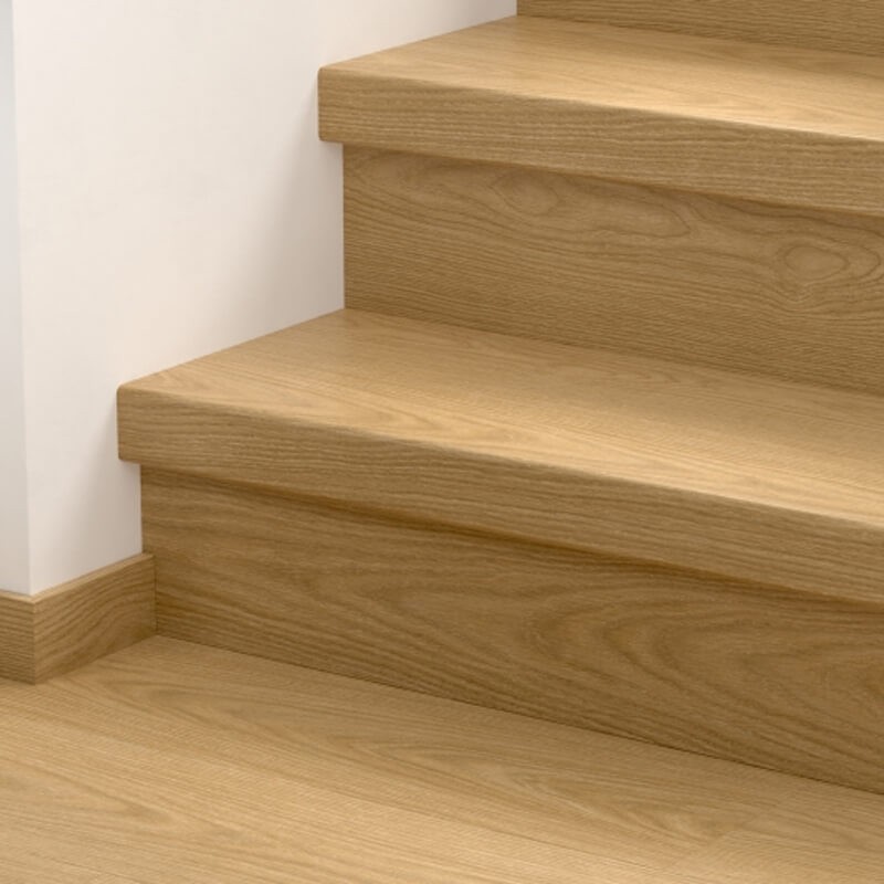 Couvre-marches pour sol vinyle à bord arrondi : une transformation élégante de vos escaliers Vous voulez donner à votre escalier un nouveau look qui correspond à votre beau revêtement de sol en vinyle ? Vous allez adorer nos couvre-marches, le moyen le plus facile et le plus durable de rénover vos escaliers. Votre sol et vos escaliers en harmonie Les couvre-marches sont la meilleure solution et aussi la plus élégante pour rénover votre escalier. Avec une marche et un bord arrondi d'un seul tenant, vous pouvez créer une transition élégante et fluide d'un niveau à l'autre. Ils sont résistants à l'usure, aux rayures, à l'eau, faciles à nettoyer et à poser, parfaits pour tout intérieur. Actuellement uniquement disponible pour Blos, Bloom et Ciro 100 % assortis : Les couvre-marches sont fabriqués à partir de nos propres revêtements de sol Quick-Step, ce qui crée un ensemble harmonieux et homogène pour vos escaliers. Résistants à l'usure et aux rayures : Leur noyau ultra-robuste et leur couche supérieure unique protègent contre les taches, les rayures et les impacts. Pose facile : Les couvre-marches sont faciles à poser sur votre escalier existant avec la colle Quick-Step One4All. Applicable pour : - Escaliers ayant une bordure carrée existante d'une hauteur maximale de 42 mm. - Escaliers avec marches carrées à 90°. Référence : QSVSTRBSP épaisseur : 54 mm Longueur : 1231 mm Largeur : 113 mm Détails du produit : 2 pièces par pack Couvre marche vinyle QSVSTRBSP40278 chêne pain d'épices Quick-Step La restitution des couleurs varie selon le type d'écran. Les caractéristiques des produits sont données à titre indicatif.