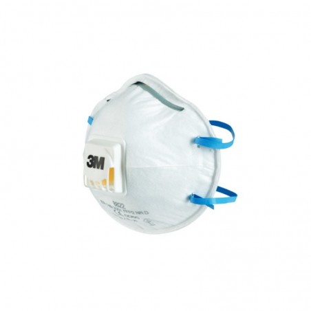 Le masque protection pour outillages et ponçage manuel 3M 8822 est notre masque respiratoire filtrant à soupape, avec coque robuste résistante à l'écrasement, pince-nez réglable, serre-tête à code couleur et soupape 3M? Cool Flow? pour un port confortable. Certifié FFP2, il est disponible en lot de trois.Pour une protection respiratoire lors du forage, de la découpe et du ponçage manuel ou avec une ponceuse orbitale, utilisez un masque protection pour outillages et ponçage manuel 3M 8822.