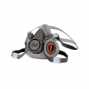 Les demi-masques réutilisables 3M 6000 sont réalisés en élastomère léger pour plus de confort. Ils sont dotés d'un double filtre à baïonnette, d'un harnais de tête et d'une bride de cou facile à serrer.