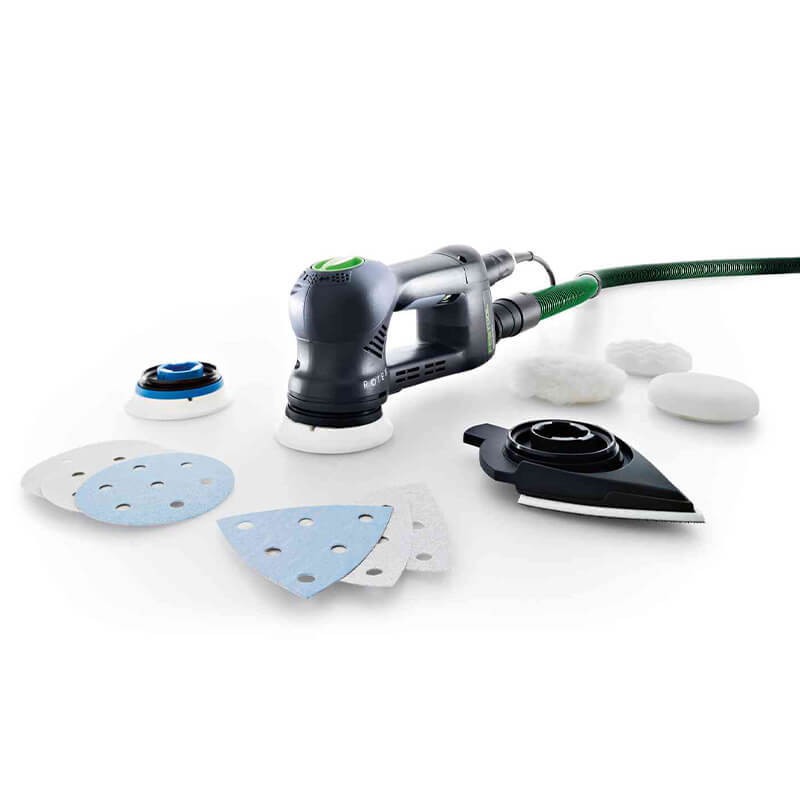 Polyvalente jusque dans les coins, quatre outils en un. Grande polyvalence, avec son principe ROTEX reconnu, la nouvelle ponceuse ROTEX RO 90 DX séduit dans le domaine du ponçage de dégrossissage, du ponçage de finition et du polissage. En plus, elle s'adapte pour le ponçage dans les coins : le plateau de ponçage ou de polissage peut être remplacé grâce à l'interface FastFix par un plateau triangulaire permettant de transformer la ponceuse ROTEX RO 90 DX en une ponceuse Delta.