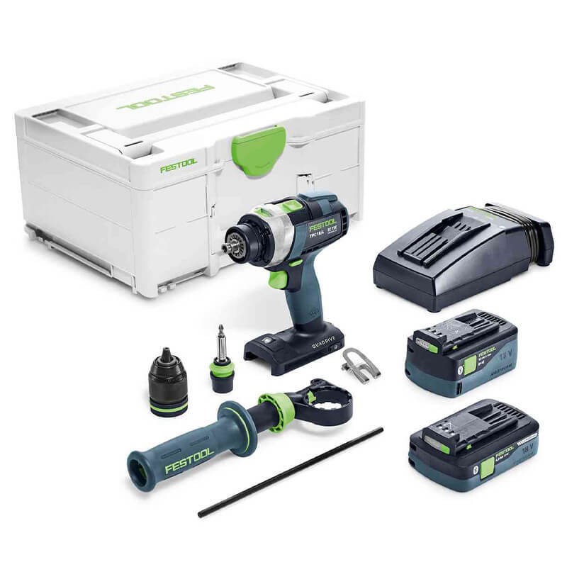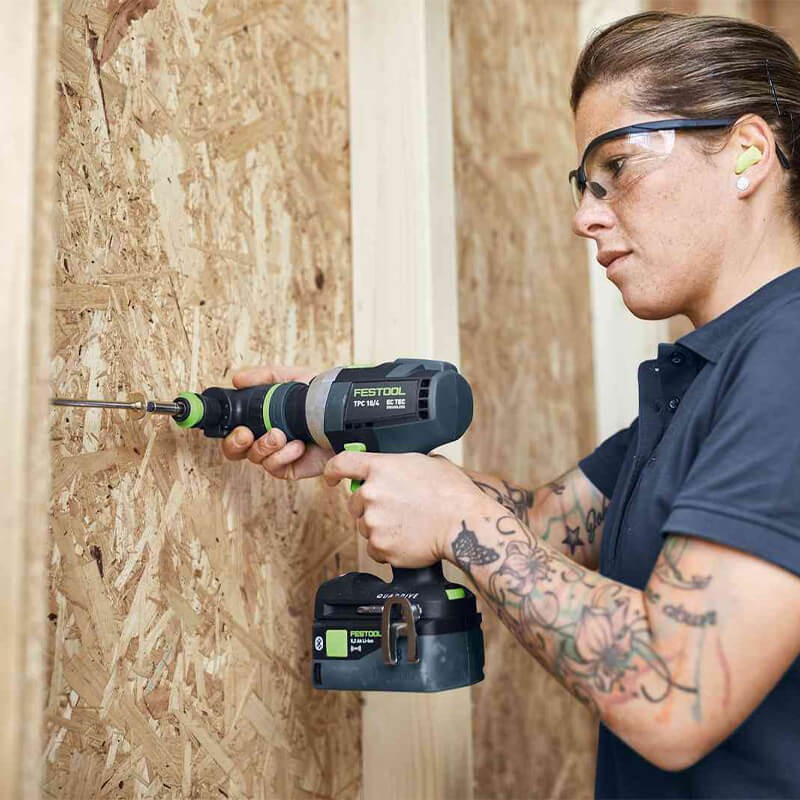 Puissante, polyvalente, avec 4 vitesses pour couvrir tous les cas de figure. Avec le meilleur concept de changement de vitesse que vous n'ayez jamais utilisé. Qu'il s'agisse de bois ou de métal, ou encore de maçonnerie grâce à la frappe axiale activable : la TPC est d'une résistance à toute épreuve et dispose, grâce à son moteur EC-TEC sans charbons, d'une force et d'une endurance extrêmes. De nombreux embouts, combinés à des accessoires parfaitement adaptés, font de la QUADRIVE une perceuse-visseuse à percussion sans égal avec de larges possibilités d'utilisation. Et qu'en est-il du risque de torsion dangereuse du poignet en cas de blocage soudain de l'outil installé ? Notre système intelligent KickbackStop réduit ce risque à un minimum. Jugez par vous-même : la meilleure perceuse-visseuse à percussion jamais fabriquée par Festool !