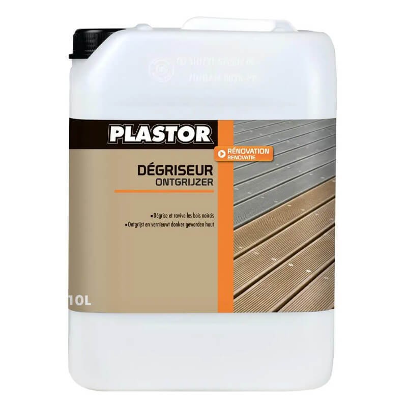 Le dégriseur terrasse Plastor est spécialement étudié pour nettoyer, dégriser et éclaircir tous les bois grisaillés par le soleil et les intempéries.