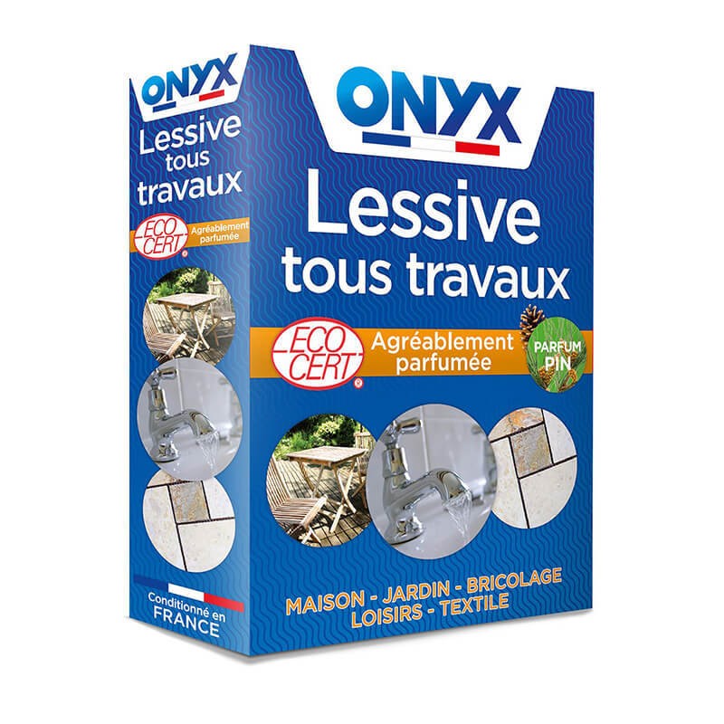 La Lessive tous travaux Onyx, enrichie en résine de pin d'origine naturelle, est idéale pour effectuer tous les travaux de nettoyage même les plus difficiles de la maison.