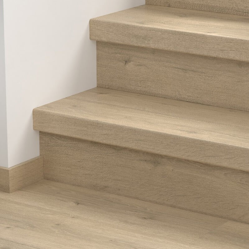 Couleurs parfaitement assorties : Les couvre-marches sont fabriqués à partir de nos propres revêtements de sol Quick-Step, donnant ainsi un look harmonieux et homogène à votre escalier.