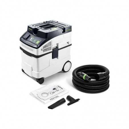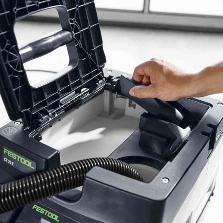 - Équipement intelligent : Les accessoires de nettoyage buse étroite et buse ameublement sont directement fournis avec le CT 25 et peuvent être rangés dans l'aspirateur. Grâce à la surface de dépose plane, le matériel de travail et autres accessoires sont toujours à portée de main. Le tuyau d'aspiration à fonction antistatique empêche l'accumulation d'électricité statique pendant l'utilisation.