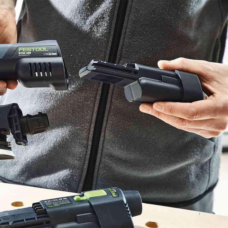 Spécialement développée pour les ponceuses sans fil ETSC, DTSC et RTSC : légère et maniable, la batterie Ergo offre une entière liberté de mouvement et un confort maximal lors du ponçage. Grâce à l'interaction parfaite de la batterie et du moteur EC-TEC, qui permet d'atteindre le même niveau d'endurance qu'avec un outil filaire, la durée d'autonomie est supérieure au temps de recharge. Dotée de la technologie Bluetooth®, elle démarre automatiquement l'aspirateur connecté au déclenchement de l'outil sans fil. En combinaison avec l'application Festool Work, elle donne accès à des informations détaillées sur le niveau de charge ainsi qu'à des données de fonctionnement, telles que la température ou les cycles de charge.Et bien entendu, elle bénéficie d'une protection complète grâce aux prestations Festool Service.
