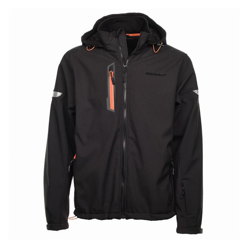 La veste softshell est polyvalente, conçue pour offrir chaleur, protection contre les intempéries et fonctionnalité. Elle est dotée de multiples poches, d'une capuche amovible et de caractéristiques réfléchissantes pour une utilisation pratique dans diverses conditions.
