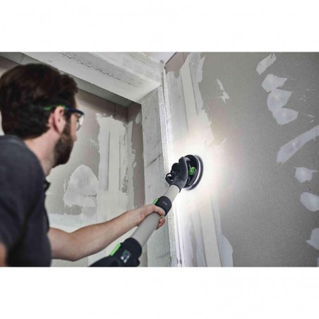 La nouvelle génération de ponceuse à bras PLANEX révolutionne le ponçage de cloisons sèches, avec une lumière à LED et le mouvement excentrique. L'éclairage LED sur le pourtour de la machine fonctionne comme une lampe rasante intégrée qui permet de mieux visualiser les aspérités pendant le ponçage. Le mouvement de ponçage excentrique permet d'obtenir une excellente qualité de surface, sans retouche fastidieuse. L'aspiration régulable, la longueur variable de travail et la poignée en forme de T, garantissent un travail ergonomique au mur et au plafond ; de plus, le guidage est facile même en cas d'utilisation prolongée.