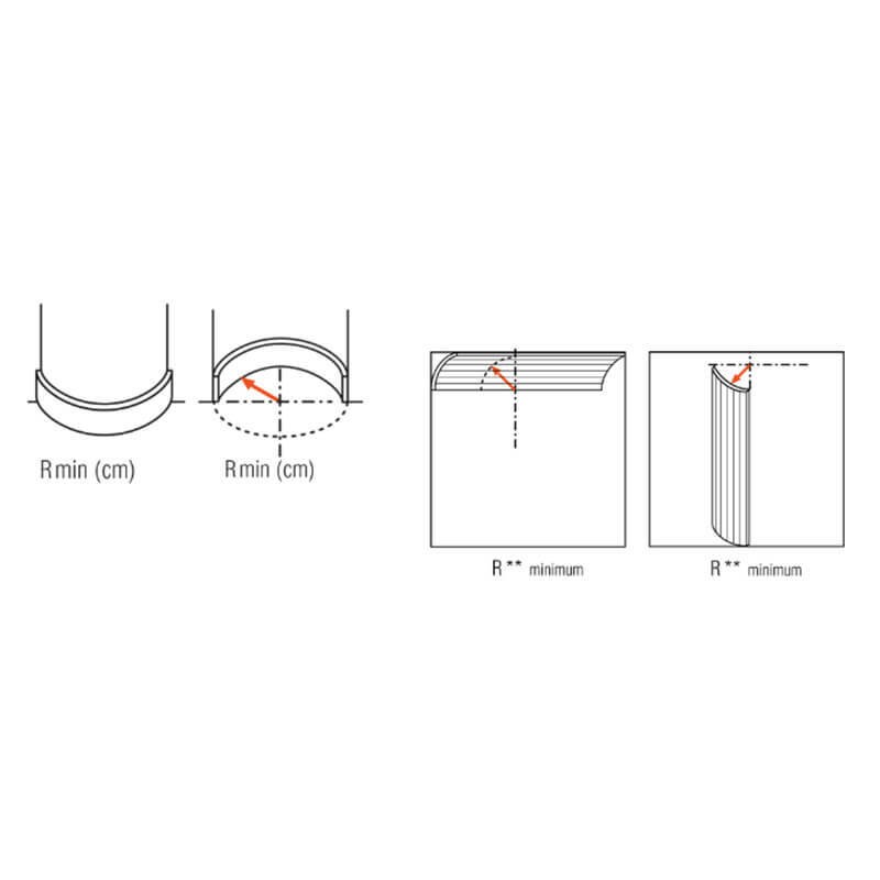 - Adaptée aux surfaces courbes (rayon minimal 40 cm)