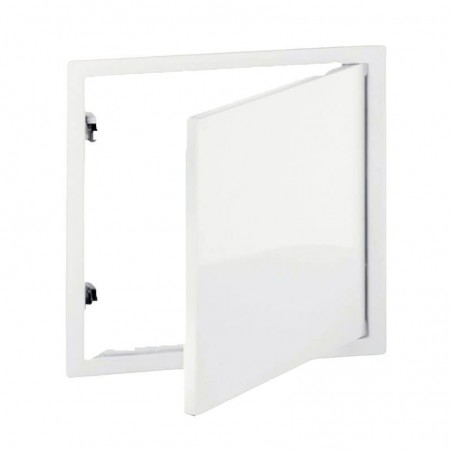Trappe de visite pour plafond et cloison avec cadre métallique protégé par une peinture blanche.