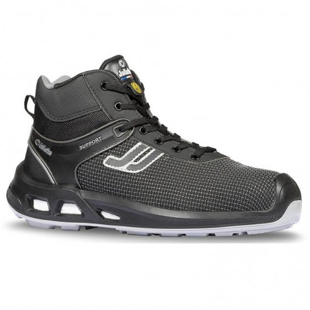 Chaussure de sécurité montante de type urban sport conçue avec une technologie anti-fatigue, coloris noir.