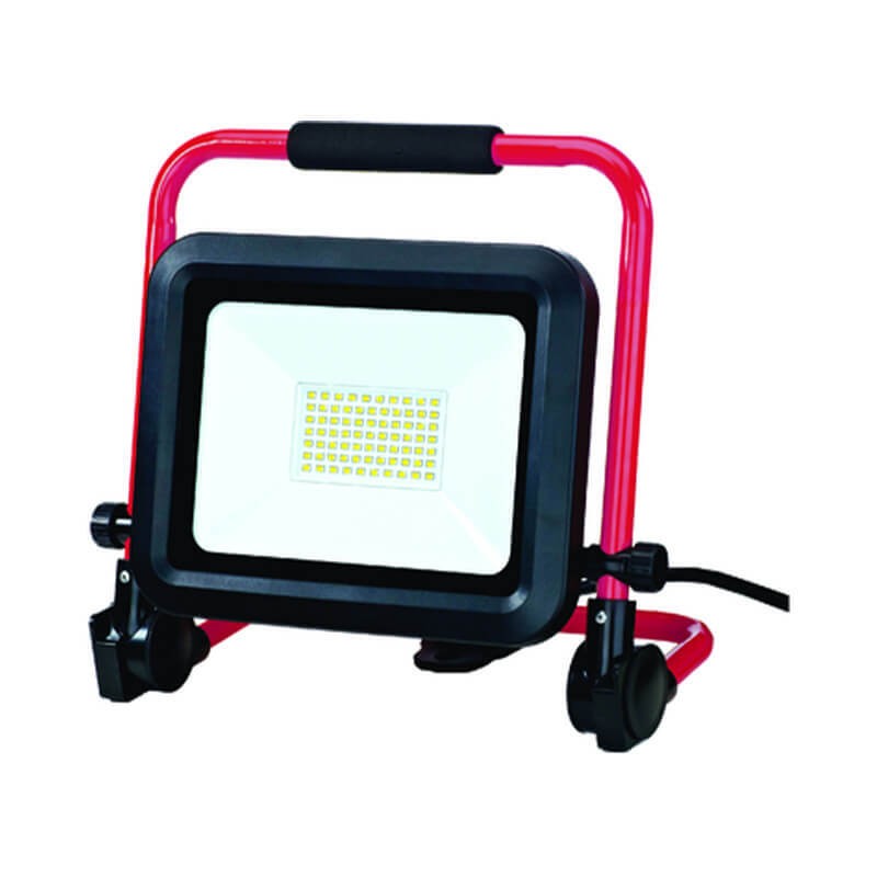 Technologie LED SLIM, compact, 50 W, 4200 lumen. Surface éclairée 980 cm² maxi. Dimensions 318,5 x 76 x 308 mm. Verre trempé. 2,1 kg. IP54. 230 V. 50 Hz. Châssis aluminium pliable. Poignée anti-chauffe. Accessoire d'accroche au mur / plafond. Norme CE