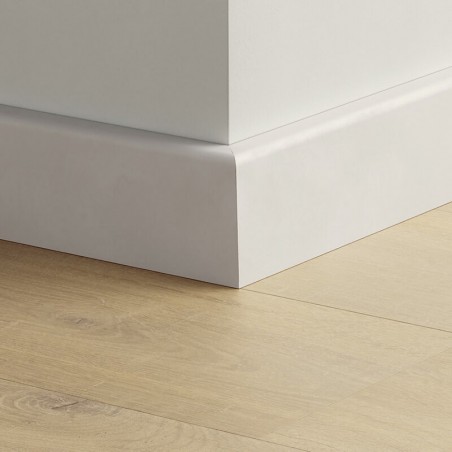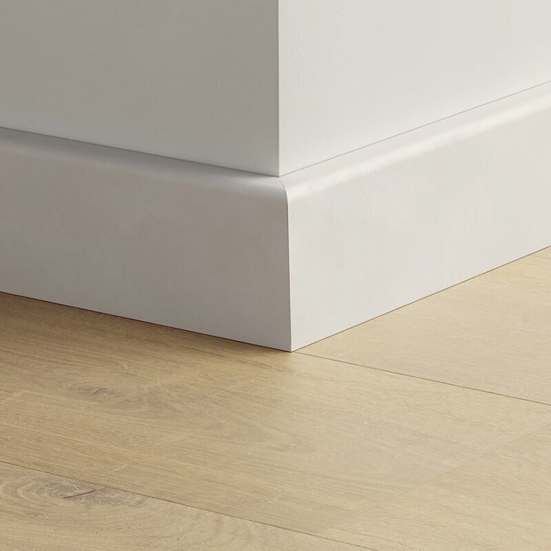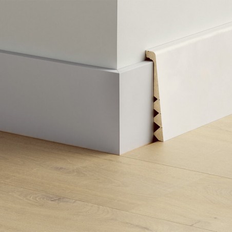Idéale pour les rénovations, lorsque l'on souhaite conserver les anciennes plinthes sans abîmer les murs. Convient aux pièces sèches. Pour cuisines, salles de bains et autres environnements humides, privilégier les plinthes résistantes à l'eau Quick-Step.