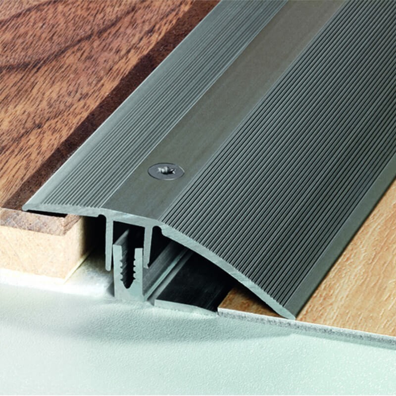Profilé en 2 parties, avec une surface striés antidérapantes, avec possibilité de les ajuster suivant la hauteur du parquet.