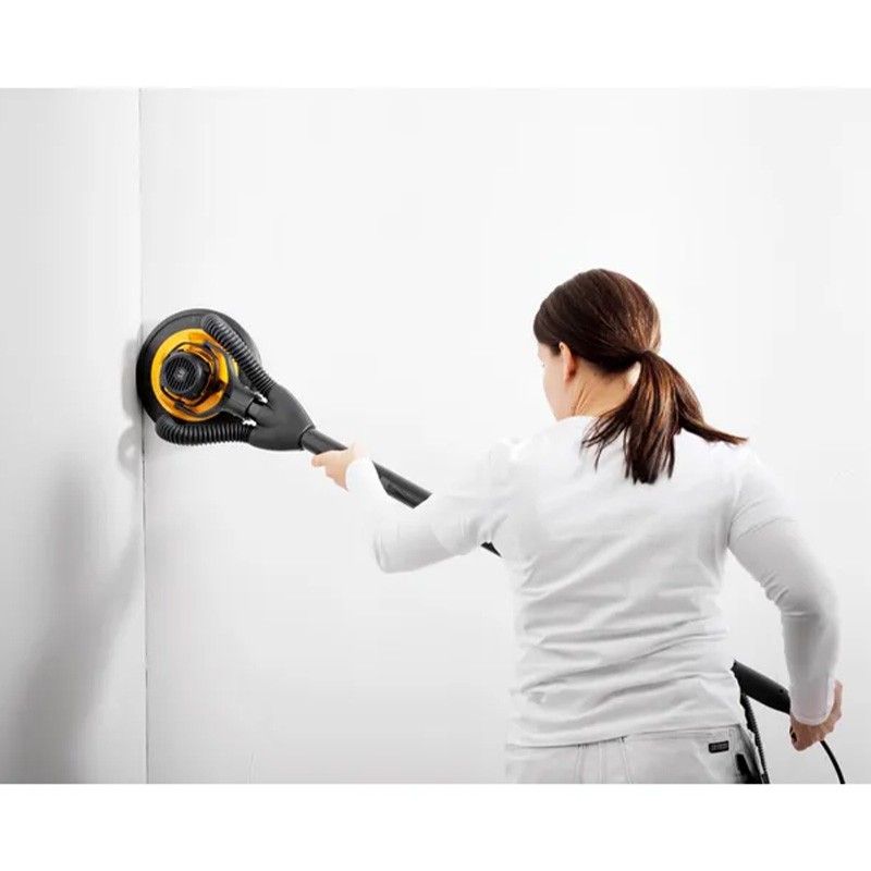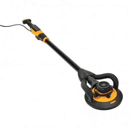 La Mirka LEROS 950CV est la première ponceuse électrique murs et plafonds avec tête flexible à 180°. Ce système innovant permet d'adopter naturellement le meilleur angle de travail tout en réduisant la fatigue physique. Le plateau Ø 225 mm et le mouvement orbital de 5 mm assurent une grande maniabilité et un ponçage efficace sur de larges surfaces.