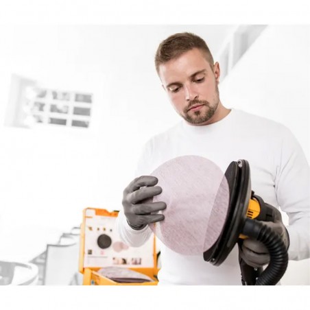 Ce kit est livré avec une housse de rangement robuste, un tuyau d'extraction antistatique de 4 m, un adaptateur, ainsi que les disques Abranet. Il constitue une solution complète, prête à l'emploi, adaptée aux artisans et aux professionnels du bâtiment.