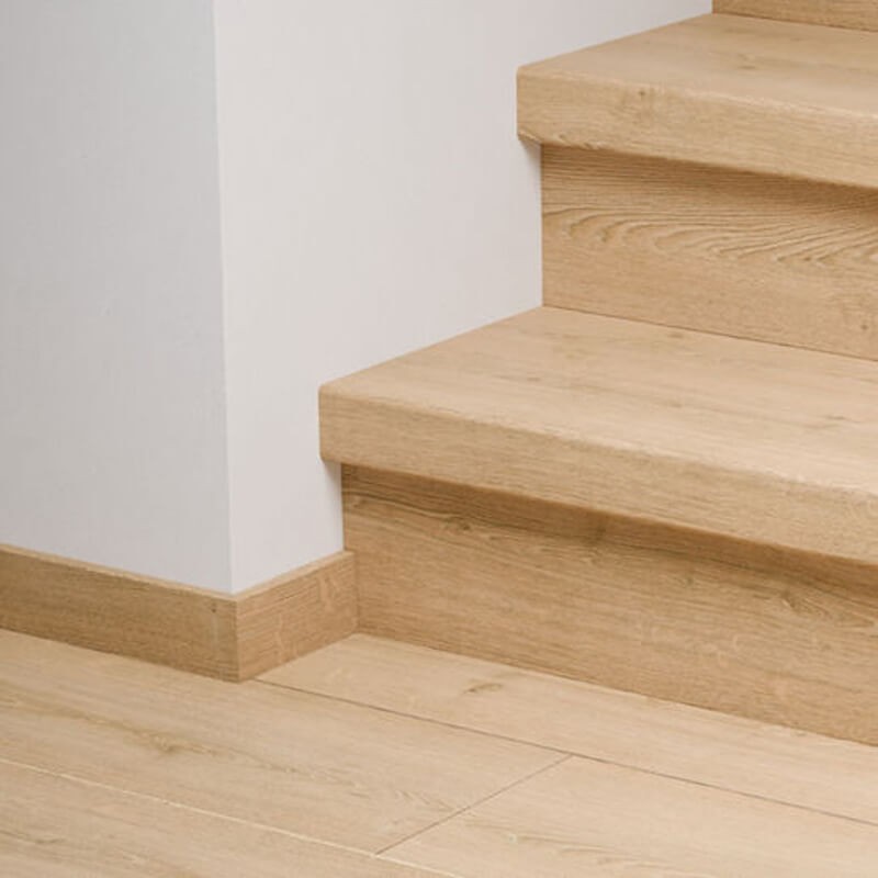 Conçus pour durer, les couvre-marches Quick Step disposent d'un noyau ultra-robuste et d'une couche supérieure protectrice. Ils résistent efficacement à l'eau, aux rayures, aux taches et aux impacts, tout en restant faciles à entretenir au quotidien. Un simple passage de chiffon humide suffit pour conserver leur éclat d'origine.
