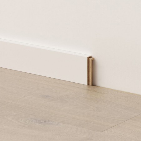La plinthe blanche petite cliquable Quick Step SFSKCLICKWHITE126 combine design épuré, fonctionnalité et pose simplifiée. Parfaite pour les petits espaces ou les pièces où la luminosité prime, elle apporte une finition soignée et durable à vos sols Quick Step.
