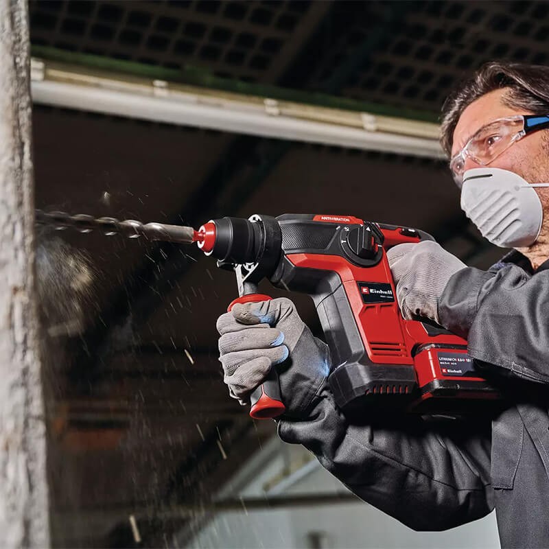 Le marteau perforateur TP-HD 18/26 Li BL-Solo Einhell Professional est un outil sans fil polyvalent conçu pour les travaux de perçage et de burinage exigeants. Il fait partie de la gamme Power X-Change et fonctionne avec une batterie 18 V compatible avec l'ensemble des outils sans fil Einhell.