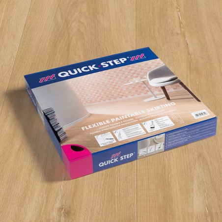 La plinthe flexible Quick-Step QSFLEXSKR est conçue pour offrir une finition élégante et homogène aux colonnes rondes, murs incurvés et autres formes atypiques. Fabriquée en mousse PVC résistante à l'eau, elle allie flexibilité et solidité, et permet de réaliser des aménagements soignés dans toutes les pièces.