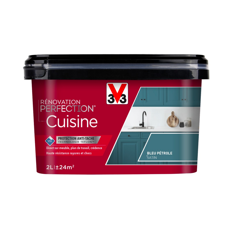 Vous recherchez une peinture pour repeindre vos meubles de cuisine tout en garantissant un résultat esthétique parfait et pour longtemps ? Vous voulez harmoniser aussi la crédence ou le frigo ? Avec Rénovation Perfection®, vous disposez d'une seule peinture qui s'adapte sur TOUS LES MATÉRIAUX, SANS SOUS-COUCHE ET SANS DÉCAPAGE sur TOUS LES SUPPORTS, dans votre cuisine !