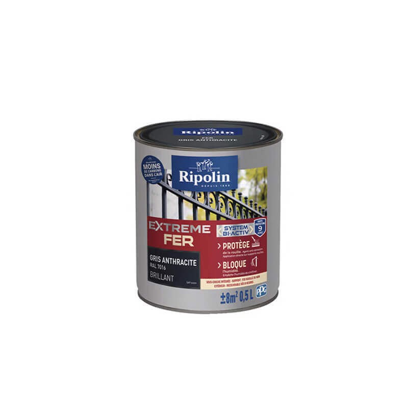 Peinture Extreme Fer Brillant 0,5L Gris Anthracite Ripolin