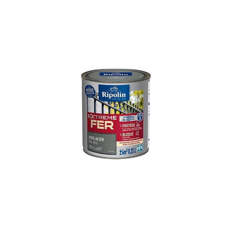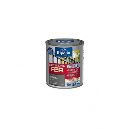 La Peinture Extrême Fer Extérieur Brillant Ripolin est une peinture glycéro spécialement conçue pour protéger et embellir les surfaces métalliques. Applicable directement sur le fer même rouillé, elle bloque l'humidité, empêche la corrosion et assure une finition brillante d'une grande résistance.