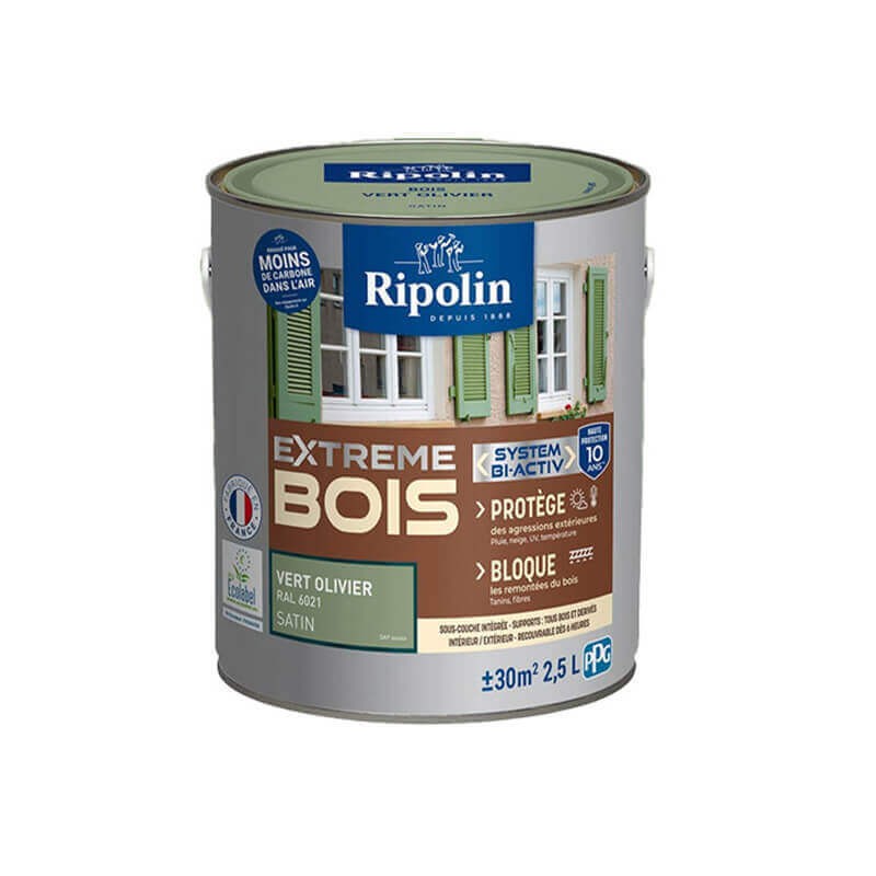 La Peinture Extrême Satin Ripolin offre une protection longue durée contre les agressions climatiques et les variations du bois. Certifiée A+ et Ecolabel, elle garantit performance, durabilité et respect de l'environnement. Idéale pour portes, volets, bardages et menuiseries extérieures.
