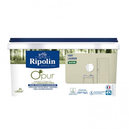 La Peinture O'Pur Multisupport Satin Ripolin associe haute performance et engagement écologique. Formulée à base de 97 % de résine biosourcée et certifiée Ecolabel, elle offre une couverture exceptionnelle tout en respectant la qualité de l'air intérieur. Idéale pour les murs, boiseries et radiateurs, elle s'applique en une seule couche pour un rendu satiné uniforme et durable.