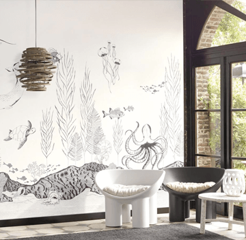 Cette année, les créateurs de tendances mettent à l'honneur l'univers aquatique. Les poissons et les coquillages s'échappent de l'océan pour apporter du tonus à nos intérieurs. Des murs avec du peps et un parquet aspect bois flotté et le tour est joué !