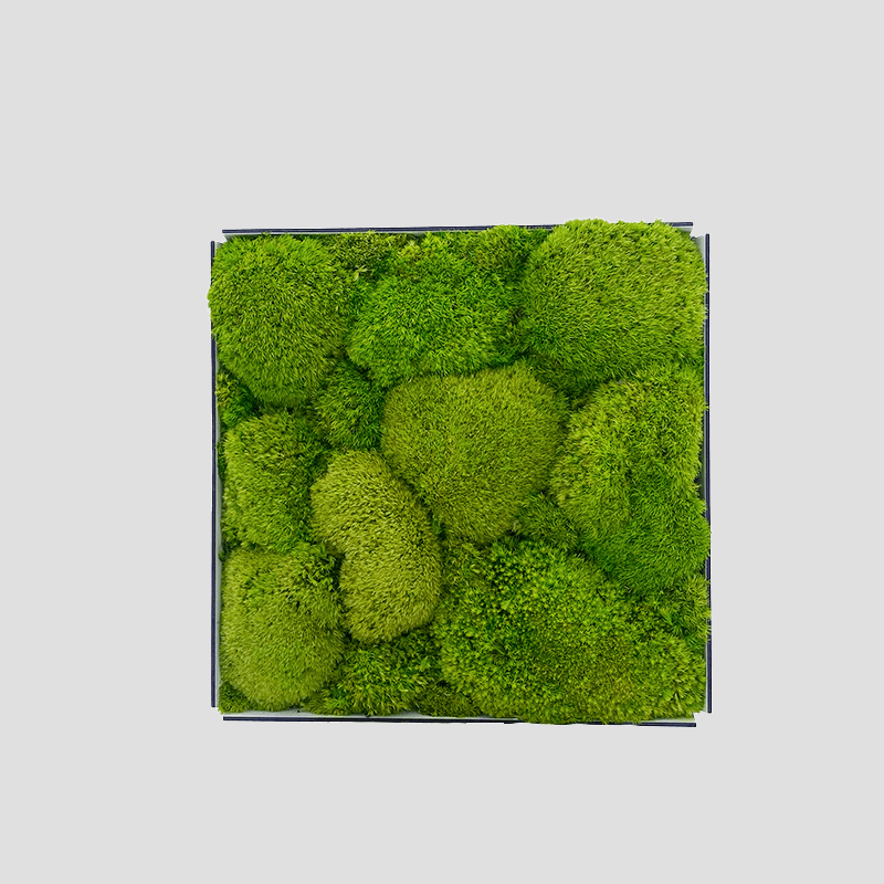 Le panneau modulaire « Surface Mousse Boule » format 60cm x 80cm est recouvert entièrement de plantes stabilisées (Plantes 100% naturelles traitées pour conserver durablement leur souplesse et leur couleur). Peuvent être découpés, pliés et assemblés dans le but de composer des surfaces végétalisées en intérieur.