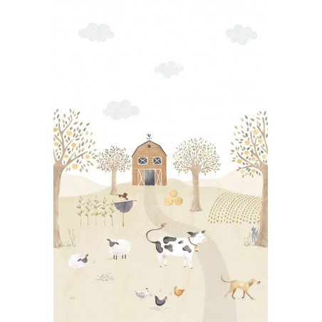 Panoramique Casadeco Once upon a time the farm adventures with cow naturel 200x280 ouat88337003