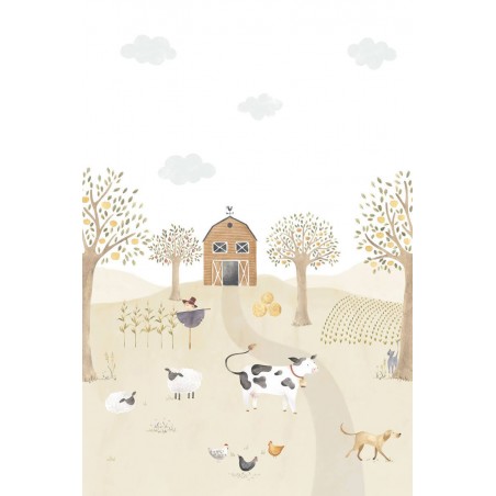 Panoramique Casadeco Once upon a time the farm adventures with cow naturel 200x250 ouat88337005