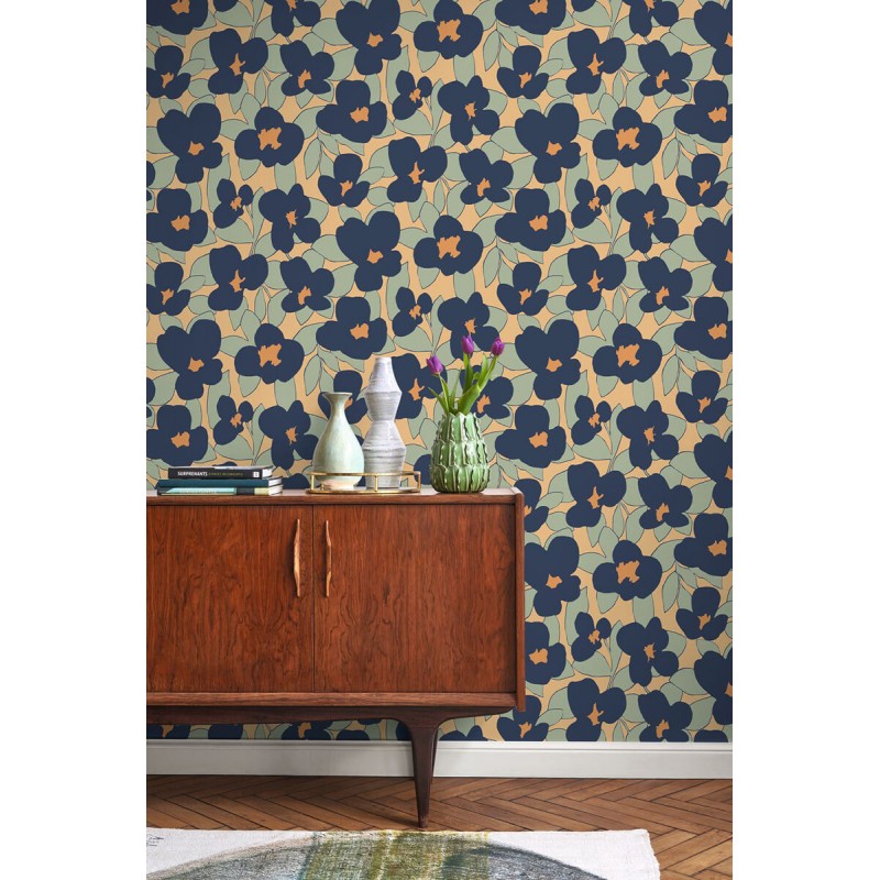 Papier peint Casadeco Iconic flower power bleu marine coni88393101