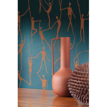 Papier peint Casadeco Iconic alberto cuivre coni88426727 Hommage au sculpteur Alberto Giacometti et aux danseurs de l'Opéra, le papier-peint Alberto est un mix de grâce et de force. On y retrouve la vitalité incandescente des modèles de l'artiste et la légèreté des entrechats chorégraphiques... Un mariage à la fois simple et artistique assumé ! Follement inspirée, la collection Iconic convoque (et sublime !) la mode vintage en un éblouissant panorama des années 50 à 80. Comme ces deux jeunes filles, faufilez-vous dans un défilé de mode et admirez la Fashion Week en mode années 50 : alors, plutôt Christian Dior ou Pierre Balmain ? Leurs silhouettes seules se retrouvent dans le dessin filaire et raffiné de Model. Avec Arty,le trait s'épure encore, et la géométrie rime avec poésie. Et que dire du virevoltant Alberto et ses danseurs filiformes, comme sculptés à la hâte avant leur envol ? Après cette ascension, on revient sur terre avec les précieuses corolles de Flower Power si emblématiques des années 70. Quant au surréaliste Not a circle, il ne tourne plus très rond ...Pour notre plus grand bonheur. La parenthèse enchantée se clôt avec deux panoramiques déjantés : Pop et ses dessins psychédéliques et Abstract et son collage artistique très eighties.