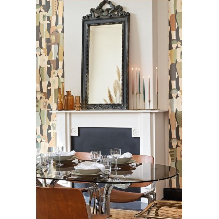 Papier peint Casadeco Iconic fashion week multico fond noir coni88444808 Se sont-elles glissées dans un cocktail de fin de défilé ? Quels secrets s'échangent-elles ? Devant ces deux élégantes, le mystère reste entier... La sophistication 50-60's y est poussée à son maximum : grâce au tour de force de l'impression numérique, délectez-vous de l'extraordinaire garde-robe de ces jeunes filles sur plus de 5 mètres. Follement inspirée, la collection Iconic convoque (et sublime !) la mode vintage en un éblouissant panorama des années 50 à 80. Comme ces deux jeunes filles, faufilez-vous dans un défilé de mode et admirez la Fashion Week en mode années 50 : alors, plutôt Christian Dior ou Pierre Balmain ? Leurs silhouettes seulesse retrouvent dans le dessin filaire et raffiné de Model. Avec Arty, le trait s'épure encore, et la géométrie rime avec poésie. Et que dire du virevoltant Alberto et ses danseurs filiformes, comme sculptés à la hâte avant leur envol ? Après cette ascension, on revient sur terre avec les précieuses corolles de Flower Power si emblématiques des années 70. Quant au surréaliste Not a circle, il ne tourne plus très rond ...Pour notre plus grand bonheur. La parenthèse enchantée se clôt avec deux panoramiques déjantés : Pop et ses dessins psychédéliques et Abstract et son collage artistique très eighties.