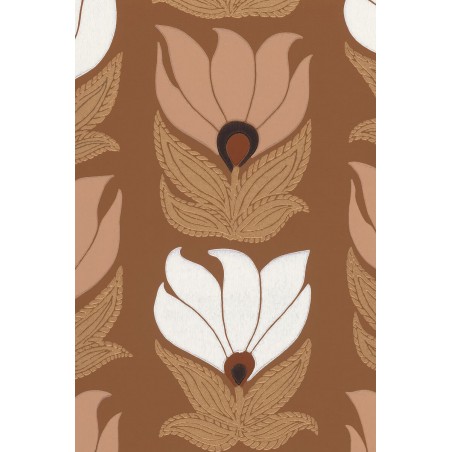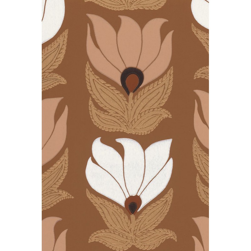 Papier peint Casamance Square jasmin dauphine ambre/nude 75690916 La dernière entrée de métro imaginée par Guimard se situe quartier Dauphine. Sa thématique végétale et ses lignes ondulantes donnent vie à un dessin d'inspiration florale, réalisé selon la technique de l'impression traditionnelle. L'encre est déposée à l'aide de cylindres traditionnels gravés en bois créant des irrégularités révélant l'aspect authentique du « fait main ». Cette technique apporte aux contours du motif un léger relief, créant l'illusion d'une fleur venant d'être peinte. Des encres métalliques lui confèrent ensuite de précieux reflets. La collection rend hommage au génie d'Hector Guimard, architecte et designer, figure de proue de l'Art nouveau français. Son style unique s'incarne dans les lignes d'un petit hôtel particulier parisien, le « Square Jasmin ». La collection retrace sa prodigieuse inventivité au travers de dessins floraux poétiques, de lignes et de courbes graphiques, de tableaux végétaux délicats. Les motifs décrivent d'élégantes géométries révélées par des jeux de textures. Entre brillance précieuse et matité, chaque dessin exprime un profond raffinement qui se poursuit dans la gamme de teintes. Les encres soulignent avec finesse certains éléments, accordant au détail une importance particulière, comme en écho à l'esprit de Guimard.