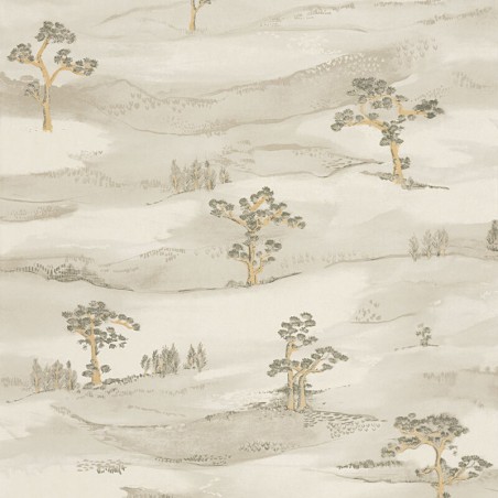 Papier peint Casadeco collection Kyoto référence mokuso 88747199 Coup de c?ur pour Mokuso et son paysage tout en mouvement ! Ici, un arbre (la signification de Mokuso) conduit en bonsaï se dresse fièrement au milieu d'une vue japonaise traditionnelle.On se sent transporté dans ces collines japonaises au charme mystérieux. Des détails irisés et nacrés lui donnent en prime une luminosité particulière. Le Japon millénaire revu à l'aune du XXIème siècle Loin du bouillonnement de Tokyo, Kyoto est une ville de charme au riche passé, où temples shintos, palais et jardins cachés abondent. Evoquer l'ancienne capitale pour cette nouvelle collection, c'est ressusciter le Japon des traditions. Au fil des différents motifs, l'île duSoleil Levant sera fidèlement dépeinte et totalement sublimée. Traditionnelle, mais pas trop : l'idée ici est de capter l'essence du Japon et de la réinterpréter en mode contemporain.