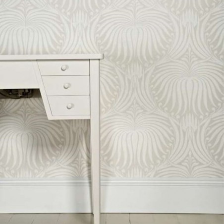 Inspiré de la période Belle Époque, le motif Lotus apporte une touche vintage élégante typique du XIXème siècle dans les maisons traditionnelles comme contemporaines. Les fleurs qui s'épanouissent au mur sont imprimées directement à partir de peinture Farrow & Ball, ce qui donne cet effet texturé au papier et cette dynamique au motif.