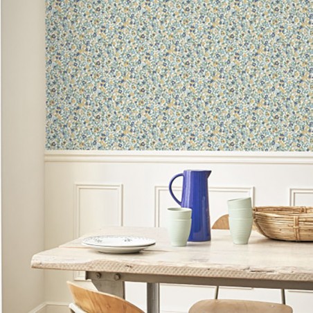 Papier peint Casadeco Flower market Pansy Bleu / Jaune 89216329 Pétales luxuriants, tiges graciles, feuillage léger : tous les ingrédients du tissu Liberty sont ici réunis sous une même bannière. Pansy se veut le plus identifiable des motifs floraux printaniers. Effet prairie fleurie garantie ! Des fleurs, oui, mais des Hauts-de-France... Pour faire éclore cette collection Liberty de printemps, Casadeco a ressuscité un patrimoine exceptionnel : celui de l'entreprise Boussac Saint Frères. Il y a une vingtaine d'années, Casadeco acquiert des catalogues rassemblant quelques-uns de leurs imprimés textiles originaux. Des ouvrages aux allures de grimoires, annotés à la plume, qui rassemblent des oeuvres travaillées à l'encre de chine. Ce sont ces merveilles de motifs que le studio de création a exhumées, réinterprétées et sublimées pour Flower Market. Avec les déclinaisons vichy, la collection compte finalement sept dessins sur papier intissé 147 grammes : ne manquez pas cette inspiration printanière et colorée !